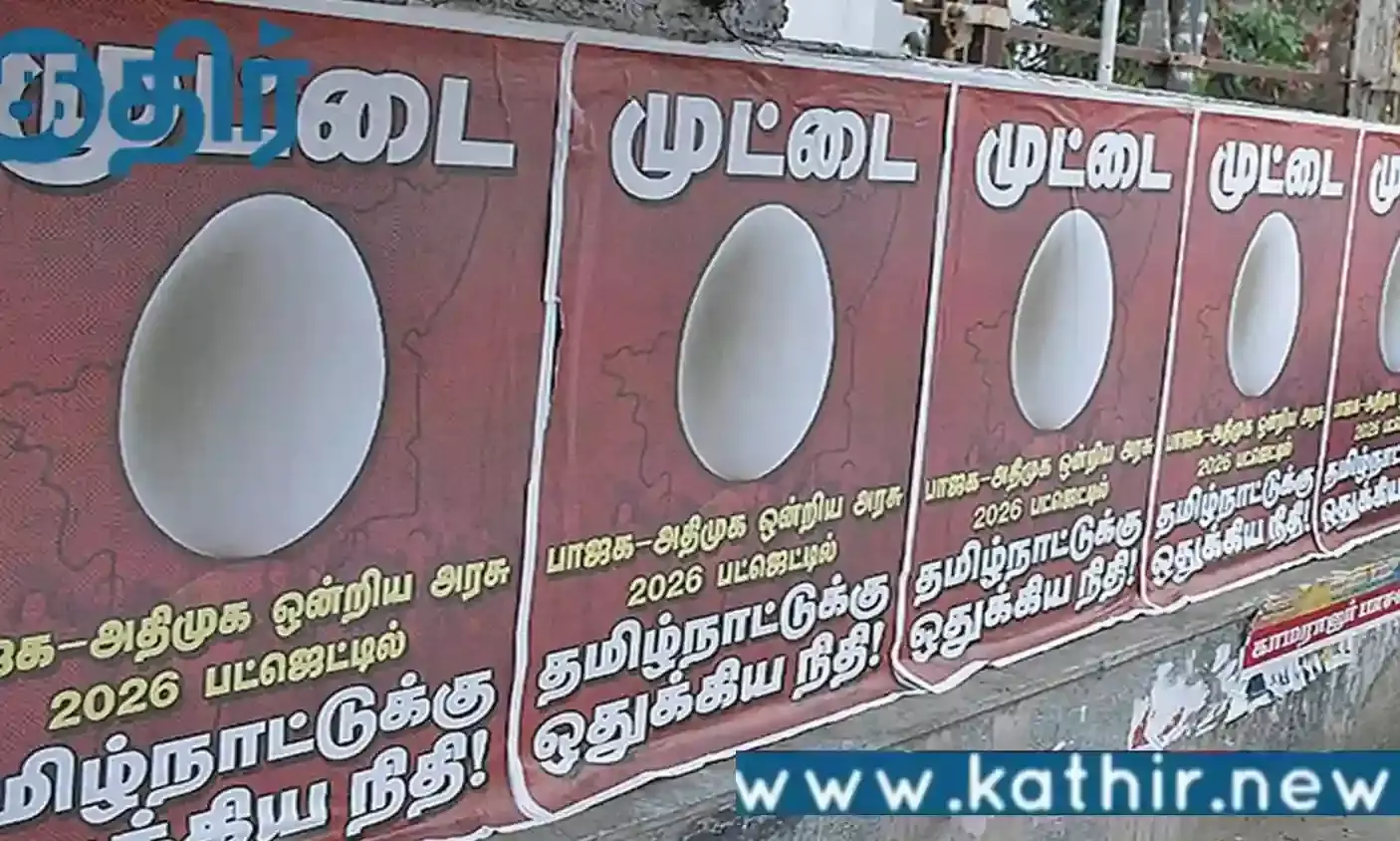 மத்திய அரசின் பட்ஜெட்டை விமர்சித்து கோவையில் திமுக சார்பில் சுவரொட்டிகள் ஒட்டப்பட்டிருந்ததை தொடர்ந்து பாஜக-அதிமுக தமிழகத்துக்கு ஒதுக்கிய நிதி முட்டை என்றும், ‘பட்ஜெட் 2026 ஒரு பூஜ்யம்’ என்ற வாசகங்களும் இடம்பெற்றிருந்தன.
