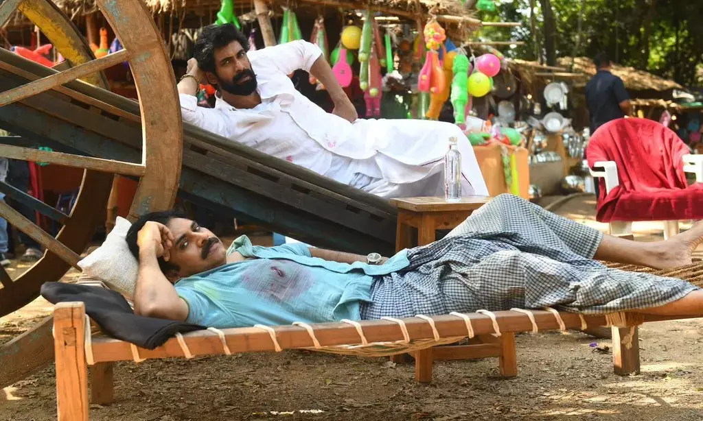 தற்பொழுது தெலுங்கு ரீமேக்கிற்காக பரபரப்பான சண்டைக்காட்சியில் பவன் கல்யாணும் ரானாவும் நடிக்க கடந்த சில நாட்களாக படமாக்கப்பட்டு வருகிறது. சண்டைக்காட்சி இடைவேளையின்போது கயிற்று கட்டிலில் பவன் கல்யாணும் மாட்டுவண்டியில் ராணாவும் படுததபடி ஓய்வெடுக்கும் புகைப்படம் ஒன்று தற்போது சமூக வலைதளத்தில் வெளியாகி வைரலாகி வருகிறது.