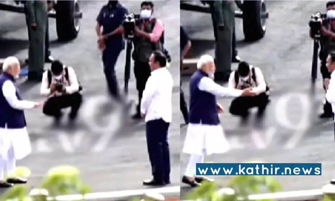 இந்த வீடியோவை பகிர்ந்த சிலர் பிரதமர் கேமரா வைத்துள்ள விதத்தை பார்த்து அப்படி செய்கிறார் என சமூக வலைதளங்களில் பதிவிட்டு வருகின்றனர்.