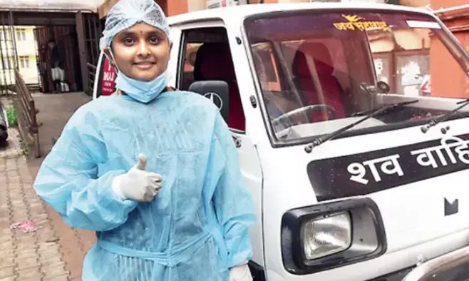 மகாராஷ்டிரா மாநிலம் கோலாப்பூரில் கல்லூரி மாணவி ஒருவர் ஆன்லைன் வாயிலாக படித்து வருகிறார். கல்லூரி நேரம் போக மீதி நேரத்தை கொரோனா தொற்றால் உயிரிழந்தவர்களின் சடலங்களை ஆம்புலன்ஸில் இருந்து மின் மயானங்களுக்கு எடுத்து செல்லும் பணியை செய்து வருகிறார்.