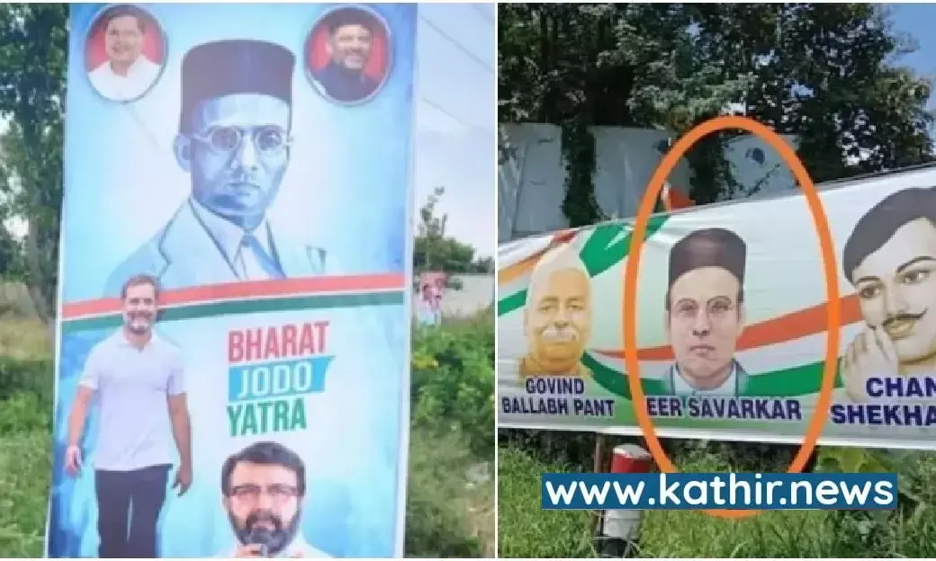 ராகுல் வரவேற்பு பேனரில் சாவர்க்கர் படம் - ஓட்டுக்காக குட்டிக்கரணம் போடும் காங்கிரஸ்!