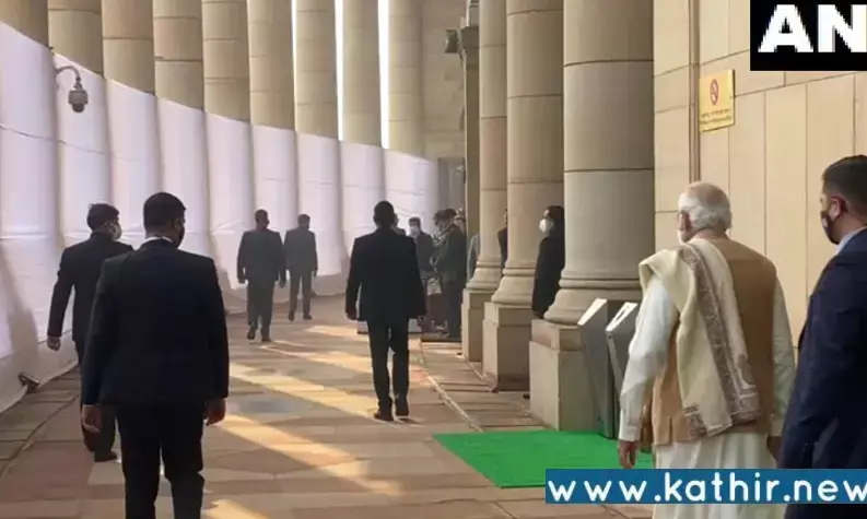 Prime Minister Narendra Modi arrives for the union cabinet meeting. #UnionBudget2022 will be presented in the Parliament today. (ANI)#Budget2022 LIVE updates:https://t.co/lEH6MRZuG9 #BudgetWithTimes pic.twitter.com/9bb2w0mBX7