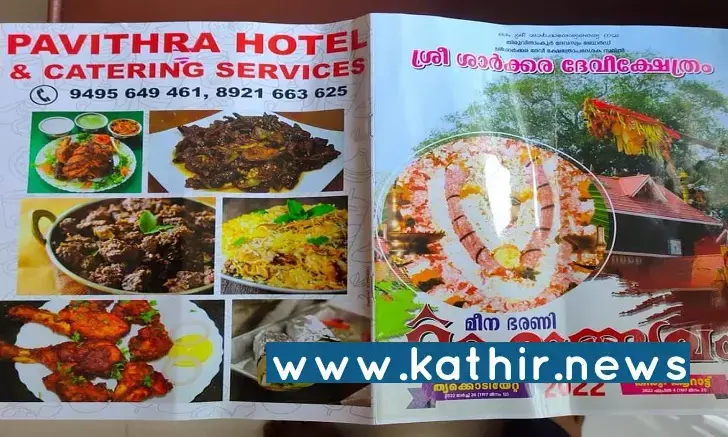 கேரள மாநிலம் ஸ்ரீ சர்க்கரா பகவதி கோவில் திருவிழாவிற்காக திருவிதாங்கூர் தேவசம் போர்டு வெளியிட்ட பத்திரிக்கையின் பின் அட்டையில், மாட்டிறைச்சி உள்ளிட்ட இறைச்சி உணவுகள் அடங்கிய கேட்டரிங் சர்வீஸ் விளம்பரம் இடம்பெற்றிருந்தது. இதனால் ஆத்திரமடைந்த பக்தர்கள் போராட்டம் நடத்தினர்.