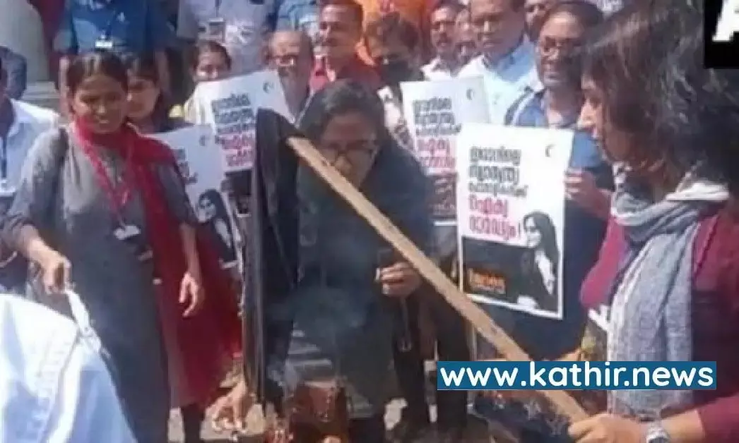 ஈரானில் தொடர்ந்து நடைபெற்று வரும் ஹிஜாப் எதிர்ப்பு போராட்டத்திற்கு ஆதரவு தெரிவிக்கும் வகையில், கேரளாவில் முஸ்லிம் பெண்கள் திரண்டு ஹிஜாபை எரித்து முழக்கமிட்டனர். கோழிக்கோடு மாவட்டம் டவுன் ஹால் அருகே திரண்ட 50-க்கும் மேற்பட்ட முஸ்லிம் பெண்கள் இந்தப் போராட்டத்தில் ஈடுபட்டனர். ஹிஜாப் மூலம் பெண்களை அடிமைப்படுத்த வேண்டாம். ஹிஜாபிலிருந்து விடுதலை வேண்டும் என்று கோஷமிட்டனர்.