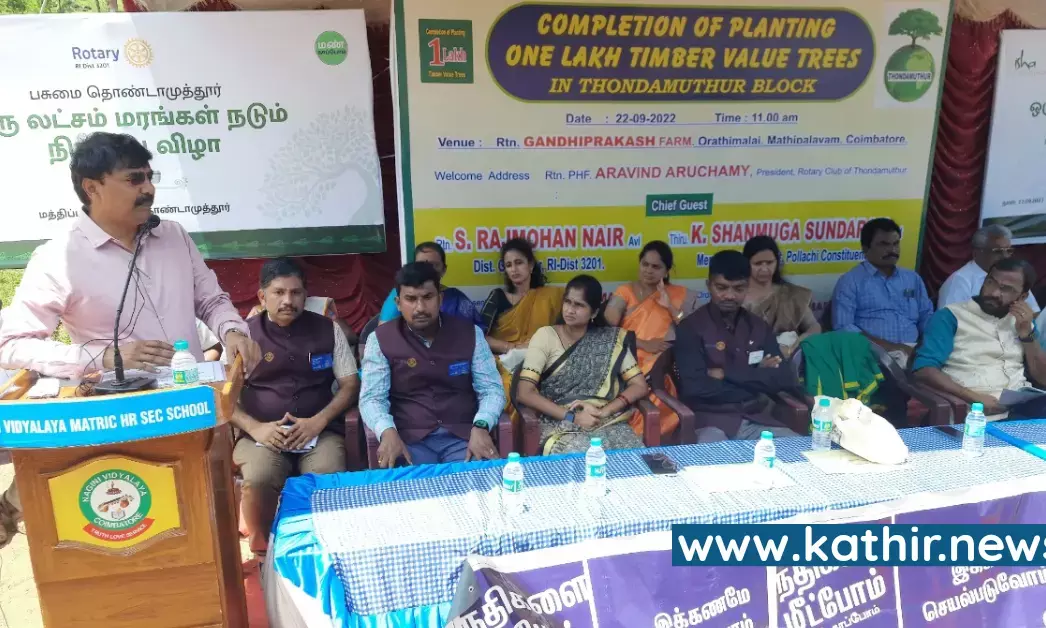 'பசுமை தொண்டாமுத்தூர்' திட்டத்தின் கீழ் 1 லட்சம் மரக்கன்றுகளை நடும் பணியின் நிறைவு விழா கோவை மத்திபாளையத்தில் இன்று (செப்டம்பர் 22) நடைபெற்றது. இதில் சிறப்பு விருந்தினராக பங்கேற்ற பொள்ளாச்சி எம்.பி விழாவில் பேசியதாவது: