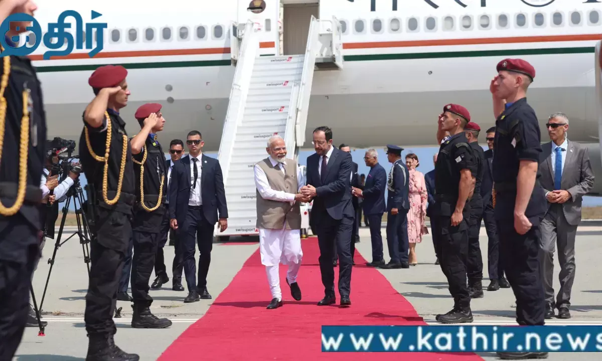 பிரதமர் நரேந்திர மோடி இன்று ஜூன் 15 சைப்ரஸ் குடியரசு, கனடா மற்றும் குரோஷியா ஆகிய மூன்று நாடுகளுக்கு சுற்றுப்பயணம் மேற்கொண்டார் அதன்படி பிரதமர் மோடியின் முதல் பயணம் சைப்ரஸ் குடியரசு ஆகும் அங்கு அவர் அதிபர் நிகோஸ் கிறிஸ்டோடௌலிடெஸின் அழைப்பின் பேரில் சென்றுள்ளார்