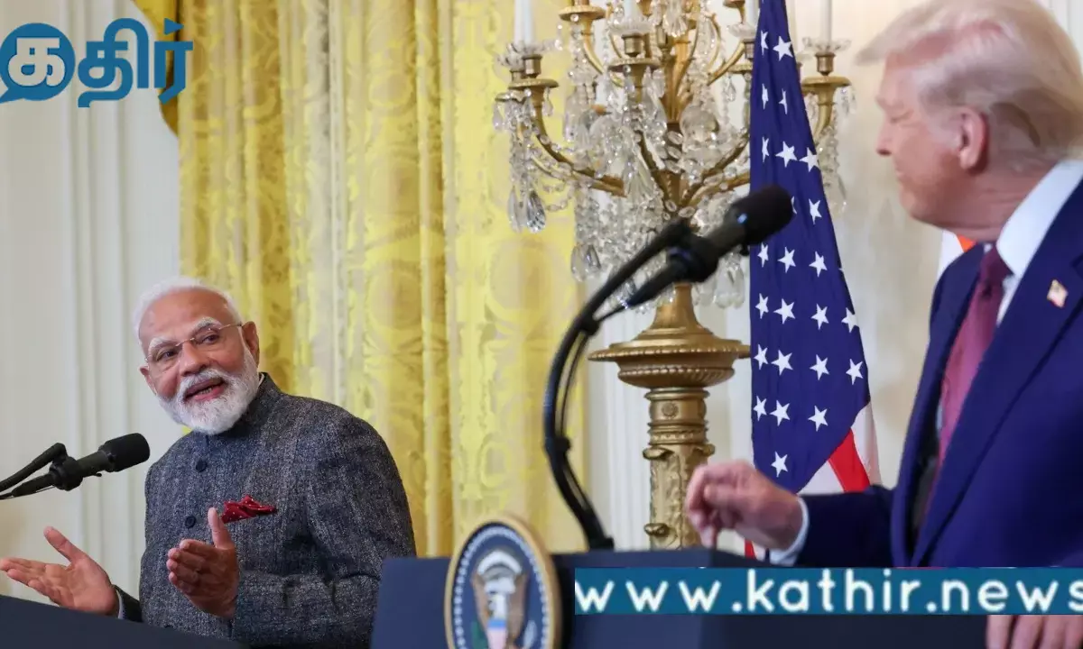 பிரதமர் நரேந்திர மோடி இன்று பிப்ரவரி 14 வெள்ளை மாளிகையில் அமெரிக்க அதிபர் டொனால்ட் டிரம்பை சந்தித்தார் அவர்களின் பேச்சுவார்த்தையின் முக்கிய கவனம் வர்த்தகம் பாதுகாப்பு மற்றும் குடியேற்றம் பற்றிய செய்திகள் வெளியாகியுள்ளது