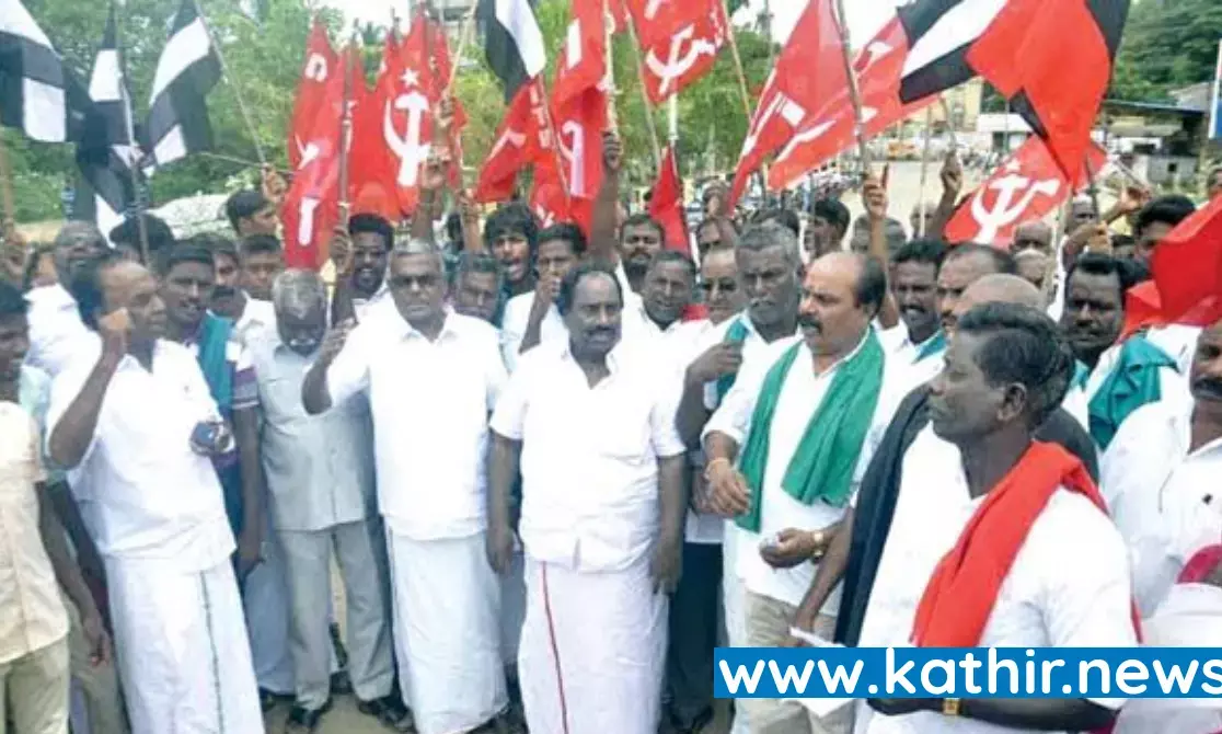 மன்னார்குடியில் தி.மு.க அரசை கண்டித்து சாலையில் நெல்லை கொட்டி விவசாயிகள் மறியல் போராட்டம் - ஏன் தெரியுமா?