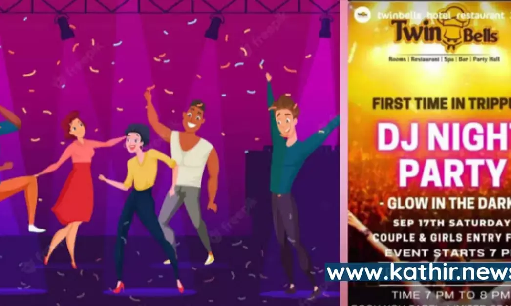 திருப்பூர் மங்கலம் சாலையில் உள்ள தனியார் விடுதியில் இன்று இரவு நடைபெறவிருந்த டி.ஜே பார்ட்டியில் தம்பதியாக வருபவர்களுக்கும், மகளிருக்கும் அனுமதி இலவசம் எனவும் மகளிர்க்கு மதுபானம் இலவசமாக வழங்கப்படும் என அறிவிக்கப்பட்டிருந்தது.
