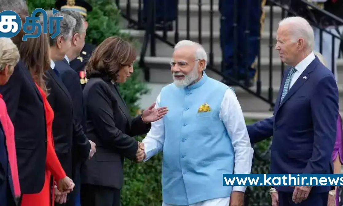 ஜனாதிபதி ஜோபைடனுன் ஜில்பைடன் மற்றும் அமெரிக்க அரசுக்கு எனது நன்றியை தெரிவித்துக் கொள்கிறேன். இந்த வரவேற்பு "140 கோடி இந்தியர்களுக்கு கிடைத்த கௌரவம்" அமெரிக்காவில் உள்ள 40 லட்சம் இந்தியர்களுக்கும் பெருமை. ஜனநாயக மாண்புகள் அடிப்படையில் அமெரிக்காவும் இந்தியாவும் கட்டமைக்கப்பட்டுள்ளன.பன்முகத்தன்மையில் பெருமை கொள்கின்றன. 30 ஆண்டுகளுக்கு முன்பு சாதாரண மனிதனாக அமெரிக்கா வந்தேன். அப்போது வெள்ளை மாளிகையை வெளியில் இருந்து பார்த்தேன்.