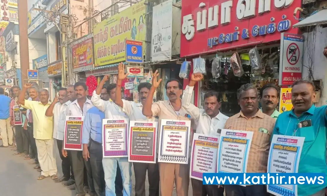 பழைய ஓய்வூதிய திட்டத்தை அமல்படுத்தக்கோரி ஜாக்டோ ஜியோ அமைப்பினர் மனித சங்கிலி