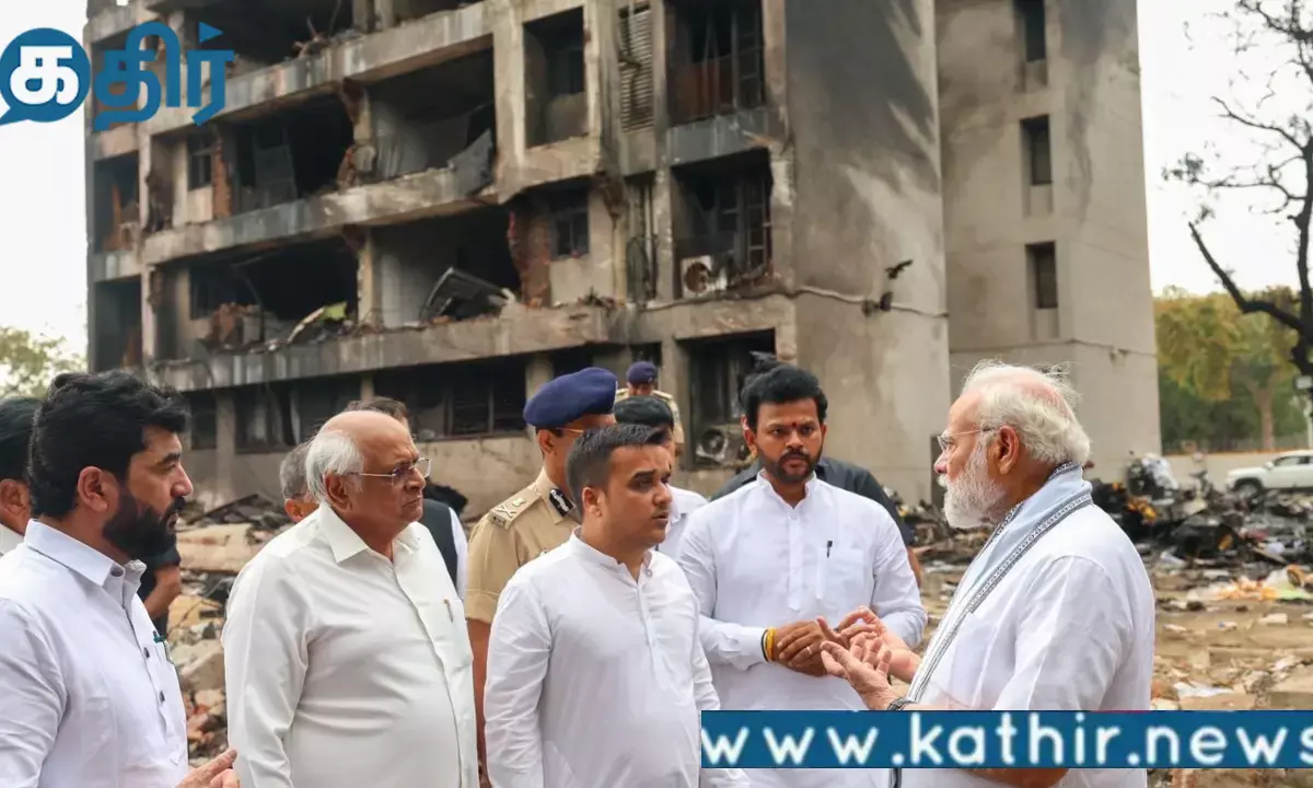 பிரதமர் நரேந்திர மோடி இன்று ஜூன் 13 அகமதாபாத் வந்து ஏர் இந்தியா விமான விபத்து நடந்த இடத்தைப் பார்வையிட்டார் நேற்று ஜூன் 12 அகமதாபாத் விமான நிலையத்திலிருந்து புறப்பட்ட சிறிது நேரத்திலேயே விபத்துக்குள்ளான போயிங் 787-8 விமானம் 242 பயணிகள் மற்றும் பணியாளர்களை ஏற்றிச் சென்றது ஆனால் எதிர்பாராத விதமாக விமானம் பயணிக்க தொடங்கிய சில நிமிடங்களிலேயே விபத்தை சந்தித்தது