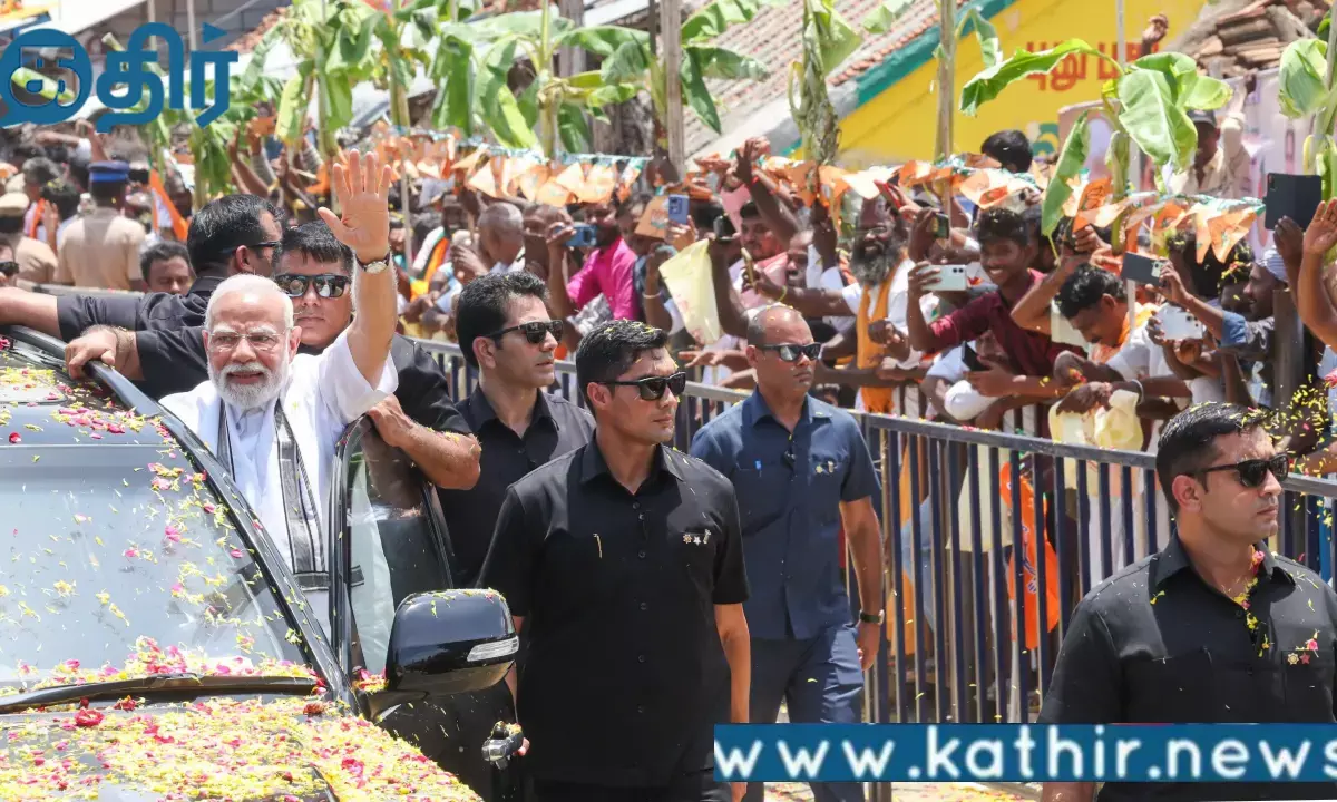 கங்கைகொண்ட சோழபுரத்திற்கு வருகை தந்த பிரதமர் நரேந்திர மோடிக்கு திரண்டிருந்த மக்கள் இன்று உற்சாகமான வரவேற்பை வழங்கினர்