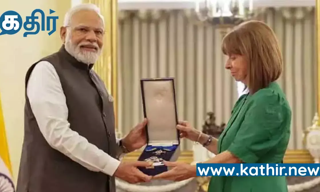 பிரதமர் மோடிக்கு கிரீஸ் நாட்டின் உயரிய விருது வழங்கப்பட்டது.