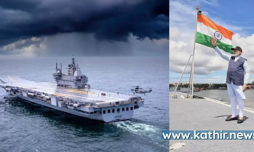கொச்சி கப்பல் கட்டும் தளத்தில் இந்தியாவில் தயாரிக்கப்பட்ட முதல் உள்நாட்டு விமானம் தாங்கி கப்பலான ஐ.என்.எஸ் விக்ராந்தை நாட்டுக்கு அர்ப்பணித்த நிலையில் இந்திய கடற்படைக்கான புதிய கடற்படை கொடியை பிரதமர் மோடி வெளியிட்டார்.