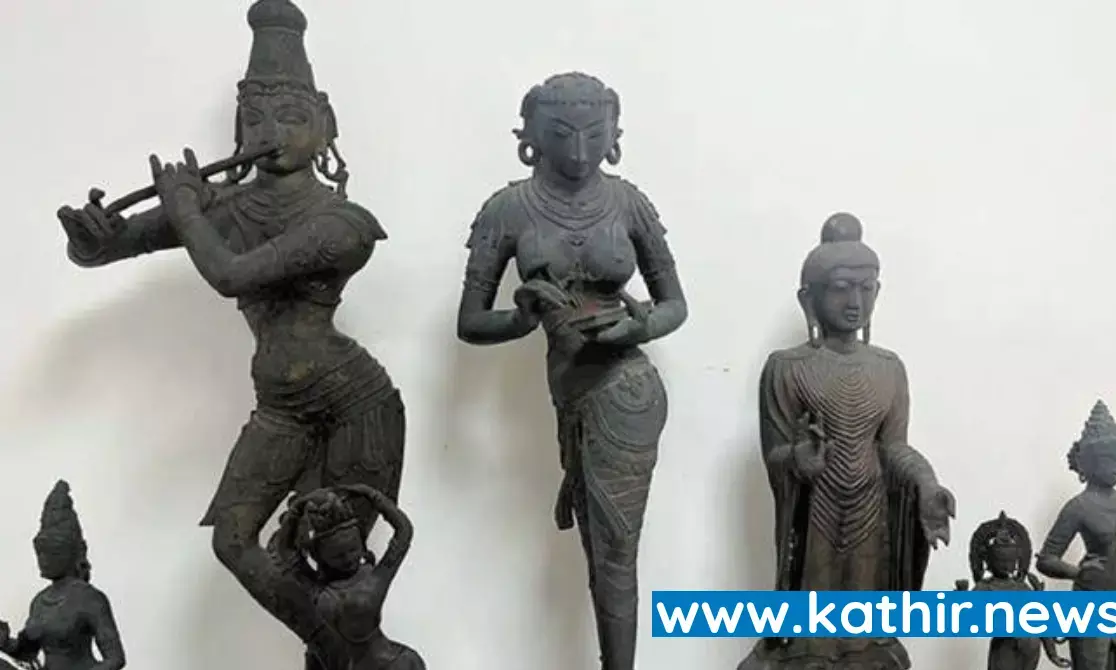 புத்தர் சிலைகள் இரண்டு, பார்வதி சிலைகள் இரண்டு ,கிருஷ்ணர் சிலை ஒன்று, மற்றும் தாரா சிலை ஒன்று, இன்னொன்று பெயர் தெரியாத பெண் தெய்வத்தின் சிலை. இந்த சிலைகள் மற்றும் தஞ்சை ஓவியங்கள் எந்த கோவிலுக்கு சொந்தமானது என்று விசாரணை நடப்பதாக சிலை கடத்தல் தடுப்பு பிரிவு போலீசார் தெரிவித்தனர்.