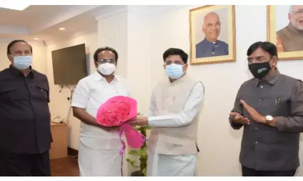 நேற்று மத்திய அமைச்சர் பியுஷ் கோயல் மற்றும் மத்திய உரம் மற்றும் ரசாயனத் துறை இணை அமைச்சர் மன்சூக் மாண்டவியா ஆகிய இருவரையும் தி.மு.க'வின் எம்.பி டி.ஆர்.பாலு, அமைச்சர் தங்கம் தென்னரசு ஆகியோர் டில்லி உத்யோக் பவனில் சந்தித்தனர்.