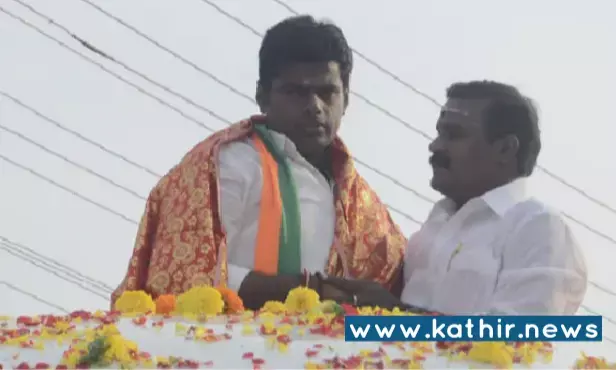 பிரச்சார மேடையிலேயே அண்ணாமலை முன்னிலையில் பா.ஜ.க'வில் இணைந்த தே.மு.தி.க வேட்பாளர்