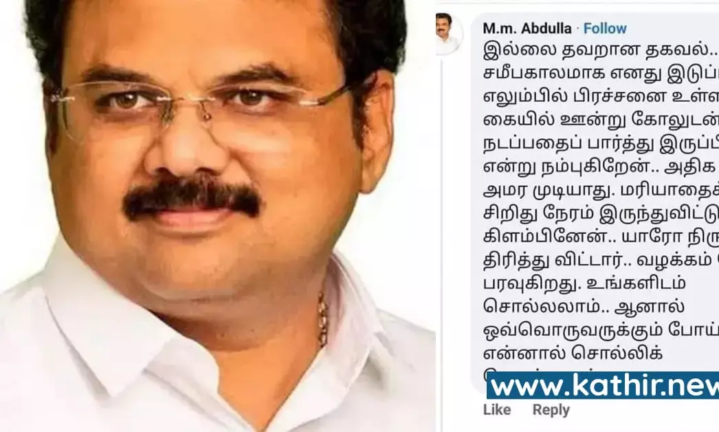 'நானே இடுப்புவலியில இருக்கேன், என்கிட்ட தேசபக்தியா?' - எம்.பி.அப்துல்லாவின் குபீர் விளக்கங்கள்!
