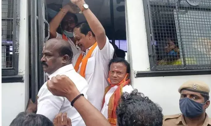 கோவையில், அங்காள பரமேஸ்வரி கோயிலை இடிக்கப்பட்டதை கண்டித்து போராட்டத்தில் ஈடுபட்ட இந்து மக்கள் கட்சியின் தலைவர் அர்ஜூன் சம்பத் உள்ளிட்டவர்கள் கைது செய்யப்பட்டுள்ள சம்பவம் அதிர்ச்சியை ஏற்படுத்தியுள்ளது.