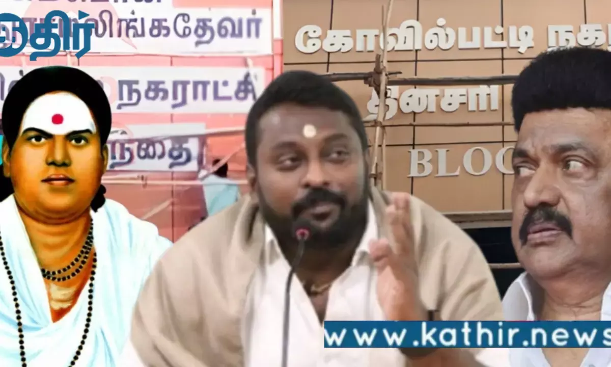 மேலும் இதுகுறித்து அவர் வெளியிட்டுள்ள அறிக்கையில் கோவில்பட்டியில் உள்ள பசும்பொன் முத்துராமலிங்கத் தேவர் தினசரி சந்தை கோவில்பட்டி நகராட்சி தினசரி சந்தையாக மாற்றப்பட்டுள்ளது திமுக ஆட்சியில் கருணாநிதியைத் தவிர வேறு எந்தத் தலைவர்களின் பெயரையும் சூட்டக்கூடாது என்று முடிவு செய்துவிட்டீர்களா கருணாநிதி பெயரில் திட்டங்கள் பேருந்து நிலையம் நூலகங்கள் இருக்கலாம் ஆனால் யார் பெயரில் இருந்தாலும் அதை மாற்ற வேண்டும் என்பதில் உறுதியாக உள்ளனர் திமுக அரசின் இந்த செயல் கொள்கையுடன் வாழ்ந்த பசும்பொன் முத்துராமலிங்கத் தேவரை அவமதிக்கும் செயலாகும் தேசியம் மற்றும் தெய்வீகம் தேவர் ஜெயந்தி விழாவுக்கு பசும்பொன் சென்ற முதல்வர் ஸ்டாலின் நெற்றியில் இருந்த புனித சாம்பலை ஒருமுறை துடைத்து அவமரியாதை செய்தார் தற்போது முத்துராமலிங்கத் தேவர் பெயரையும் திட்டமிட்டு அழித்துள்ளனர்