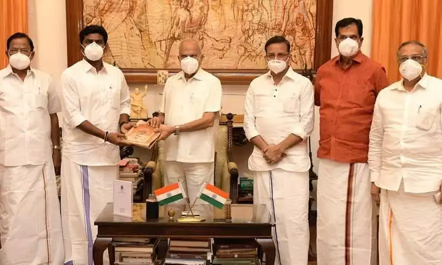 சென்னையில் உள்ள ஆளுநர் மாளிகையில் ஆளுநர் பன்வாரிலால் புரோகித்தை தமிழக பாஜக தலைவர் கே.அண்ணாமலை மற்றும் அக்கட்சியை சேர்ந்த நிர்வாகிகள் மரியாதை நிமித்தமாக சந்தித்தனர்.