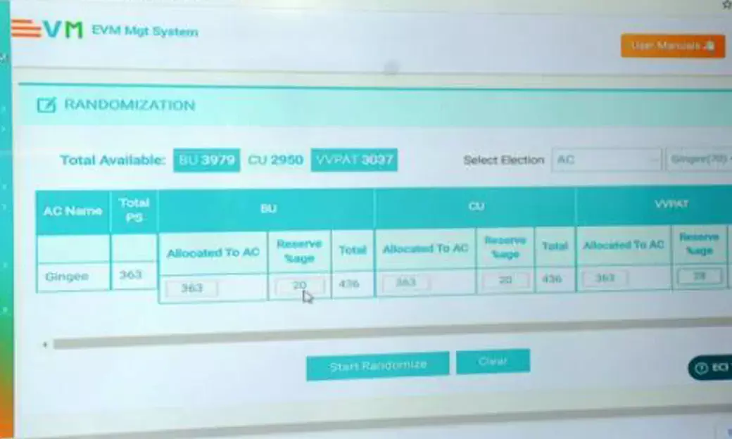 இதன் தொடர்ச்சியாக வாக்குச் சாவடிகளுக்கு அனுப்பட வேண்டிய மின்னணு வாக்குப்பதிவு இயந்திரங்கள் ஒதுக்கீடு செய்யும் பணிகளை இன்று மாவட்ட ஆட்சியரும், தேர்தல் அதிகாரியுமான அண்ணாதுரை தலைமையில் நடைபெற்றது.