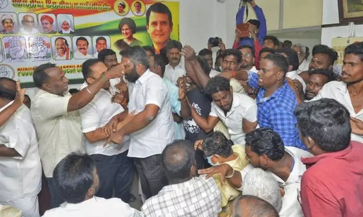இந்த கூட்டமானது யூனியன் பிரதேசத்தில் வரவிருக்கும் சட்டமன்ற தேர்தலில் வேட்பாளரைத் தீர்மானிப்பது குறித்து நடத்தப்பட்டது. இந்த கூட்டத்தில் முன்னாள் முதலமைச்சர் V நாராயணஸ்வாமி அவர்களும் கலந்து கொண்டார். மோதல் முரட்டுத்தனமாகச் சென்றதைத் தொடர்ந்து காங்கிரஸ் தலைமையகத்துக்கு வெளியே கூடுதல் பாதுகாப்புப் படையினர் குவிக்கப்பட்டனர்.