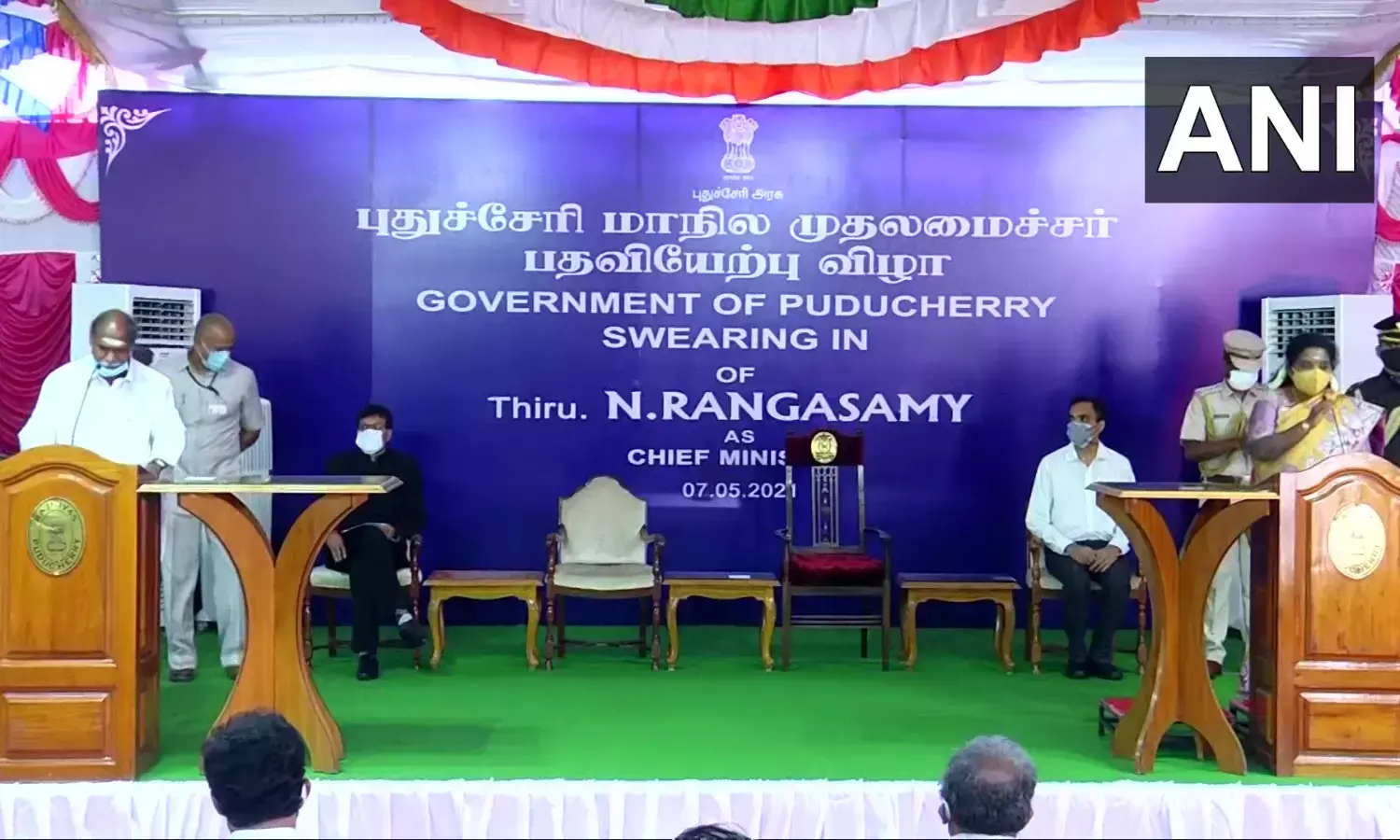 புதுச்சேரி முதலமைச்சராக ரங்கசாமி இன்று பதவி ஏற்றுக் கொண்டார். அவருக்கு ஆளுநர் தமிழிசை சவுந்தரராஜன் பதவிப்பிரமாணம் செய்து வைத்தார்.