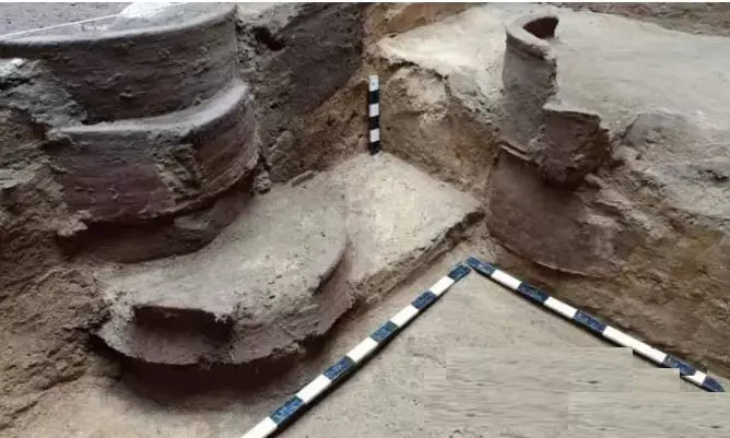 சிவகங்கை மாவட்டம், கீழடி 7ம் கட்ட அகழ்வாராய்ச்சியில் ஒரே அகழாய்வு குழியில் 3 உரை கிணறுகள் கண்டுப்பிடிக்கப்பட்டுள்ளது.