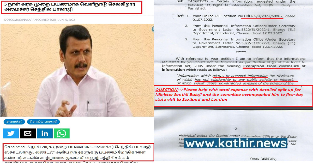 செந்தில் பாலாஜி லண்டன் பயணம் பித்தலாட்டம்! தகவல் அறியும் உரிமை சட்டத்தின் கீழ் அம்பலம்!