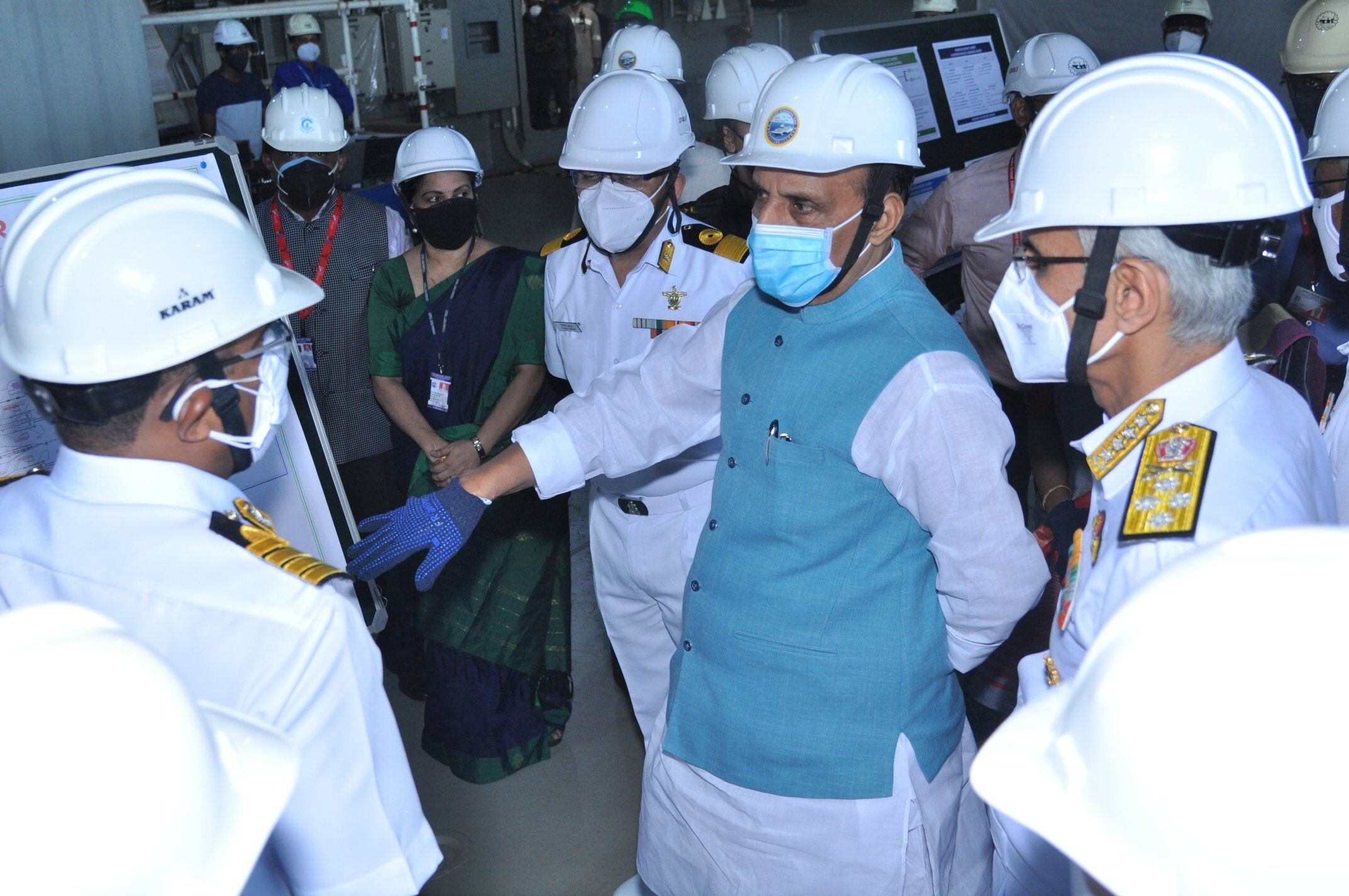 போர்க்கப்பலின் கட்டுமான பணிகளை பார்வையிட்ட பின்னர் கடற்படை வீரர்களுடன் ராஜ்நாத் சிங் கலந்துரையாடினார். அப்போது அவர் "இந்த போர் கப்பலில் 75 சதவீத பொருட்கள் உள்நாட்டு தொழில்நுட்பத்தில் தயாரானவை. மேலும் கோவிட்- 19 வைரஸுக்கு எதிரான போராட்டத்தில் இந்திய கடற்படையின் பணி பாராட்டத்தக்கது. டவ்தே மற்றும் யாஸ் புயல்களின் போது கடற்படை மேற்கொண்ட தேடுல் மற்றும் மீட்பு பணிகளும் பாராட்டத்தக்கவை. உலகின் முதல் 3 கடற்படைகளின் பட்டியலில் இந்தியா இடம்பெறும் நாள் வெகுதொலைவில் இல்லை என நான் நம்புகிறேன்" என்று ராஜ்நாத் சிங் கூறினார்.