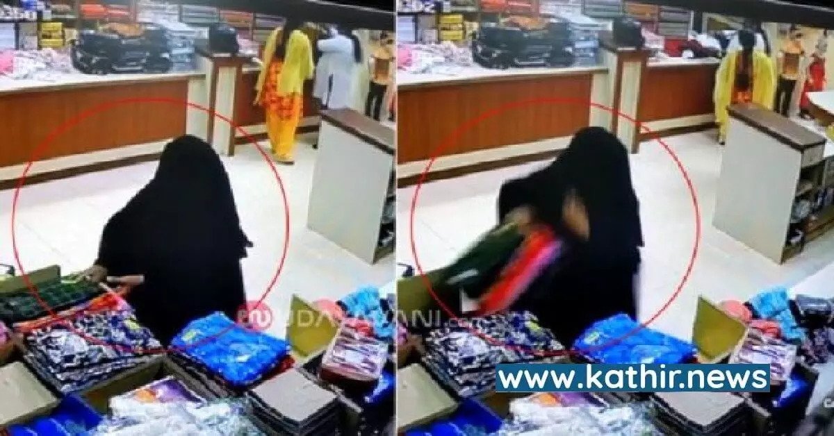 கடந்த செப்டம்பர் 26ஆம் தேதி கடலோரப் பகுதியான காவூர் பகுதியில் உள்ள சந்தியா டெக்ஸ்டைல்ஸ் ஸ்டோரில் இச்சம்பவம் நடந்தது. ஷாப்பிங் என்ற போர்வையில் கடைக்கு வந்த அடையாளம் தெரியாத பெண், விற்பனையாளரின் கவனத்தை திசை திருப்பி துணிகளைத் திருடி அதை புர்காவின் கீழ் மறைத்து வைத்துள்ளார்.