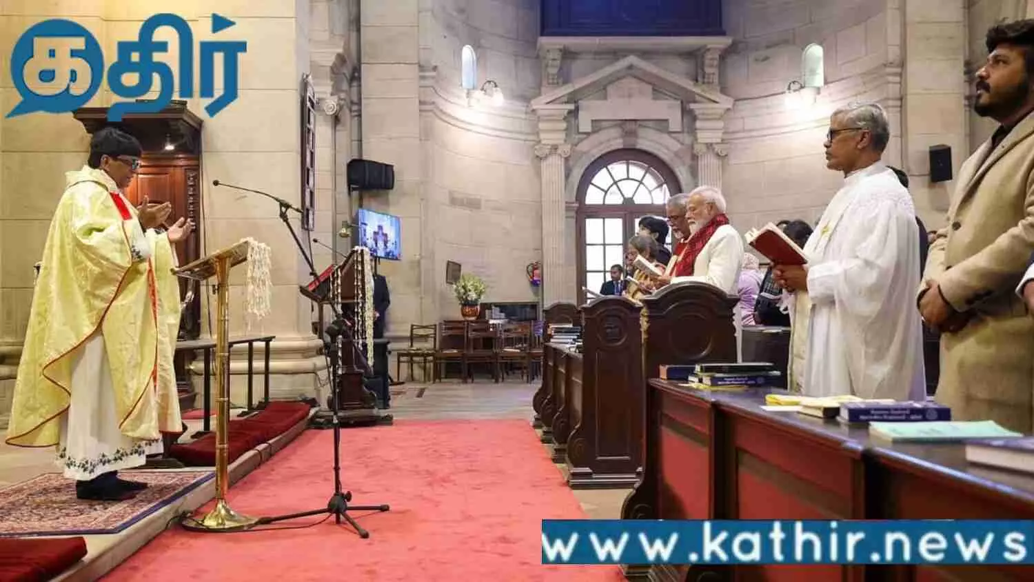 டெல்லியில் உள்ள கத்தீட்ரல் தேவாலயத்தில் நடைபெற்ற பிரார்த்தனையில் பிரதமர் மோடி பங்கேற்றார். பின்னர், பாதிரியார்களிடம் கலந்துரையாடினார்.