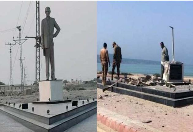 பாகிஸ்தான் நாட்டின் பலூசிஸ்தான் மாகாணம், தென்மேற்கு கடலோரம் குவாடர் பகுதியில் முகமது அலி ஜின்னாவின் சிலை ஒன்று அமைக்கப்பட்டிருந்தது. இந்தியாவாக இருந்தபோது பாகிஸ்தானாக பிரிந்து செல்வதற்கான முயற்சியில் ஈடுபட்டவர்தான் ஜின்னா. அவரது சிலையைதான் பலூச் விடுதலை முன்னணி என்ற அமைப்பு வெடிகுண்டு வைத்து தகர்த்துள்ளனர்.