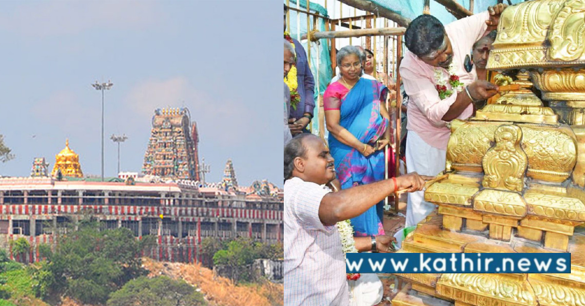கோவில்களில் ஆகம விதிப்படி பாலாறு நிகழ்ச்சிகள் நடைபெற்று வருகிறது. இந்நிலையில் மலைக்கோவில் உங்கள் சன்னதிக்க மேல் உள்ள தங்க கோபுரத்தை தூய்மைப்படுத்தும் பணி நடைபெற்றது. சிறப்பு பூசைகள் நடத்தப்பட்டு தங்கம் சரி செய்யும் பணியாளர்கள் கோவில் உதவியாளர் லட்சுமி முன்னிலையில் தங்க கோபுரத்தை ஆய்வு செய்தார்கள். கோபுரத்தில் உள்ள தூசிகள் பாசிகள் செய்தமடைந்த பகுதிகள் அகற்றப்பட்டு தங்கம் மூலம் பூசும் பணிகள் மேற்கொள்ளப்படும் என நிர்வாகம் தரப்பில் கூறப்பட்டுள்ளது.