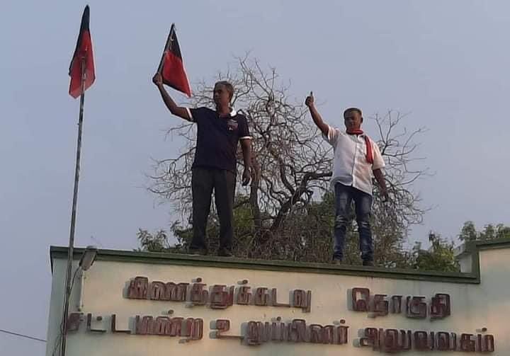தற்பொழுது மேலும் ஒரு தி.மு.க'வின் அராஜக செயல் புகைப்படம் இணையத்தில் வைரலாகி வருகிறது. அதில் கிணத்துக்கடவு சட்டமன்ற உறுப்பினர் அலுவலகத்தினு மேல் நின்று தி.மு.க'வினர் தி.மு.க கொடியை பிடித்தபடி அந்த கட்டிடத்தில் இனி தி.மு.க கொடிதான் பறக்க வேண்டும் என கோஷமிட்டதாக புகைப்படங்கள் இணையத்தில் வலம் வந்துகொண்டிருக்கின்றன.