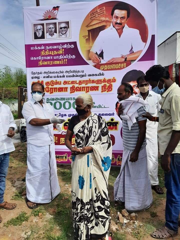 ஆனால் தற்பொழுது ஆட்சியில் இருக்கும் தி.மு.க'வினர் ரேசன் கடைகளில் 2000 ரூபாய் நிவாரணம் அளிக்கும் திட்டத்திற்கு ப்ளக்ஸ் வைத்து, ரேசன் கடைகளில் தி.மு.க கொடிகளை கட்டி, சில தி.மு.க கரை வேட்டிகளை ரேசன் கடைகளில் நிற்க வைத்து, இன்னும் சொல்லப்போனால் பேரிடர் காலத்தில் மக்களுக்கு விரைந்து சேவை செய்ய வேண்டிய அமைச்சர்கள் கூட ரேசன் கடைகளில் நிவாரண பணம் தர நிற்கின்றனர்.
