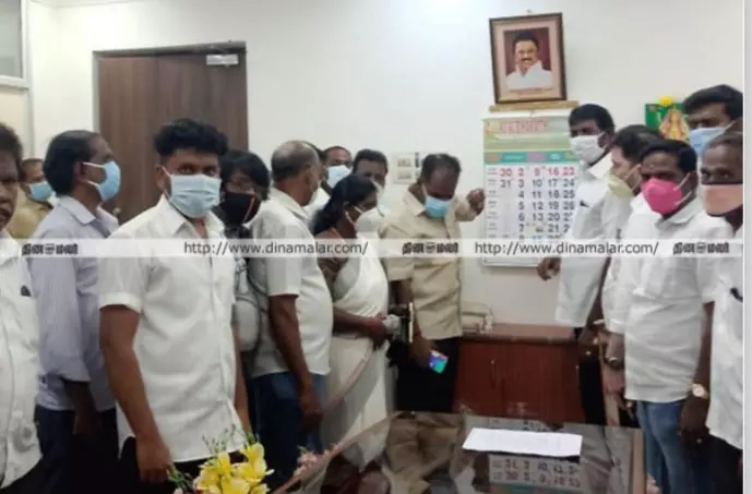 தமிழக அரசின் முழு ஊரடங்கு உத்தரவை சிறிதளவும் மதிக்காமல், 25க்கும் மேற்பட்ட தி.மு.க-வினர் கூட்டமாக வந்து, மாநகராட்சி மண்டல அலுவலகத்தில் நேற்று, முதல்வர் ஸ்டாலின் படத்தை வைத்து, அட்டகாசம் செய்த சம்பவம் பரபரப்பை ஏற்படுத்தி உள்ளது.
