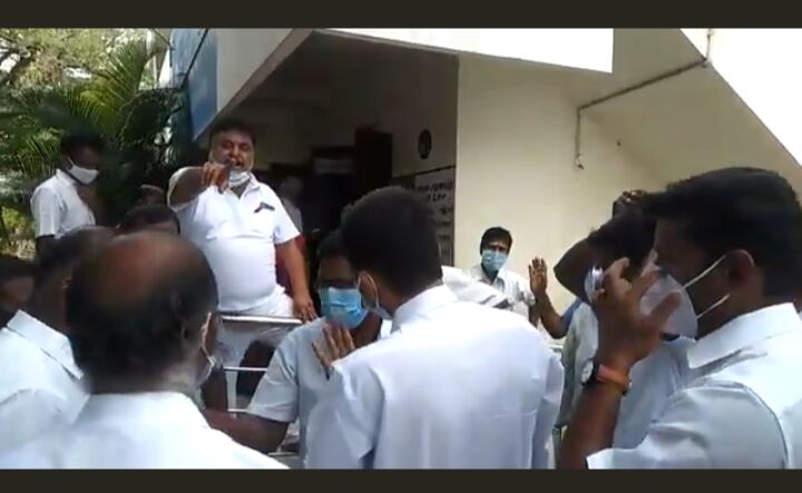 அப்போது அங்கு வந்த தி.மு.கவினர், "தடுப்பூசி போடுவதற்கான டோக்கன்களை நாங்கள்தான் விநியோகம் செய்வோம்" என்று கூறி மருத்துவ குழுவினரிடமும், மருத்துவர் முகுந்தன் என்பவரிடமும் வாக்குவாதத்தில் ஈடுபட்டனர்.