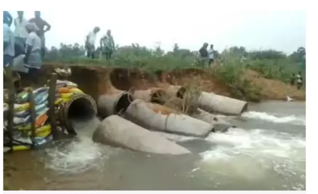 இங்கு கடந்த சில தினங்களாகத் தொடர் கனமழை பெய்து வருவதால், இந்த ஆற்றில் நீர்வரத்து அதிகரித்திருக்கிறது. அதனால், வழக்கம் போல, நேற்று இந்த தரைப்பாலம் உடைந்துவிட்டது. இந்த நிலையில் டி.ஆர்.ஓ., தாசில்தார்., பி.டி.ஓ போன்றோர் வந்து பார்த்துவிட்டு சென்றதாகவும், இதற்கு நிரந்தர தீர்வு வேண்டும் எனவும் அப்பகுதி மக்கள் கோரிக்கை விடுத்துள்ளனர்.