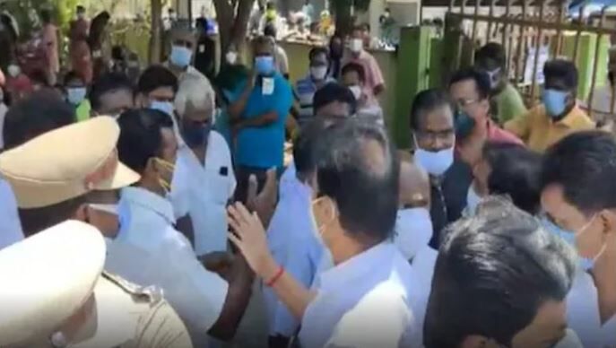 இந்நிலையில், கோவை சிங்காநல்லூர் ஆரம்ப சுகாதார மையத்தில் தடுப்பூசி போடும் பணி நடைபெற்று வருகிறது. அங்கு அதிமுக எம்.எல்.ஏ., ஜெயராம் மற்றும் அதிமுகவினர் பொதுமக்களுக்கு மாஸ்க் மற்றும் கபசுரக் குடிநீர் உள்ளிட்டவற்றை வழங்கி வந்துள்ளனர். அப்போது அங்கு வந்த திமுகவினர் எதற்காக மாஸ்க், கபசுர குடிநீர் வழங்கி வருகின்றனர் என்று அதிமுகவினரிடையே வம்பு இழுத்துள்ளனர். இதனால் அங்கு இரு தரப்பினரிடையே கடும் வாக்குவாதம் ஏற்பட்டது.