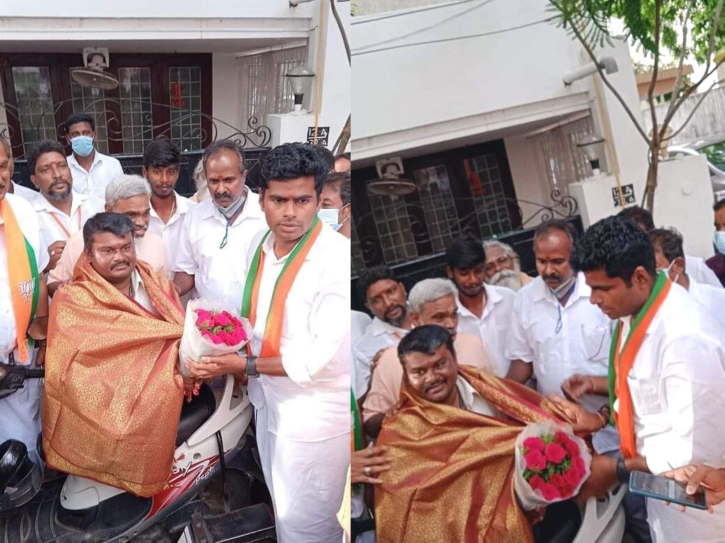 அப்போது, இதனை கவனித்த பாஜக தலைவர் கே.அண்ணாமலை, அவரது வாகனத்தின் அருகாமையில் சென்று அவரை வரவேற்றார். இது தொடர்பான புகைப்படங்களை தமிழக பாஜக முகநூல் பக்கத்தில் பதிவிடப்பட்டுள்ளது.