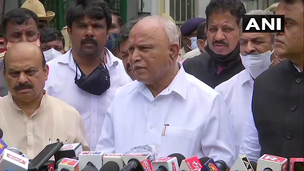 கர்நாடக ஆளுநர் தாவர்சந்த் கெலாடை ஆளுநர் மாளிகையில் நேரில் சந்தித்து தனது ராஜினாமா கடிதத்தை எடியூரப்பா இன்று வழங்கினார்.