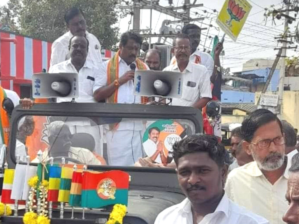 அவருடன் அதிமுக, பாமக, தமாகா நிர்வாகிகள், தொண்டர்கள் உடன் சென்று தாமரைக்கு வாக்கு சேகரித்து வருகின்றனர்.