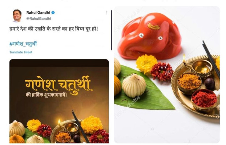 நேரு குடும்பத்தின் இளவரசரும், இந்தாலியை பிறப்பிடமாக கொண்ட சோனியாவின் புதல்வரும், காங்கிரஸின் வாழ்நாள் பிரதமர் வேட்பாளருமாகிய ராகுல் காந்தி விநாயகர் இல்லாத விநாயகர் சதுர்த்தி வாழ்த்தை தனது ட்விட்டரில் தெரிவித்தார். அந்த புகைப்படம் பற்றிய தகவல்கள் தற்பொழுது இணையங்களில் வெளியாகியுள்ளன. அதாவது ராகுல் இணையத்தில் பதிவேற்றிய புகைப்படம் விநாயகர் உருவத்துடன் இலையில் பூ மற்றும் அகல் விளக்குடன் இருப்பது போன்ற புகைப்படம். ஆனால் ராகுல் தனது ட்விட்டர் பதிவில் விநாயகர் உருவத்தை பிடுங்கி எறிந்துவிட்டு பூ மற்றும் அகல் இருக்குமாறு பதிவேற்றியுள்ளார். இந்துக்கள் மீது அரசியல் காரணங்களுக்காக வெறுப்பு இருக்கும் என நினைத்தால் இந்துக்கள் மீதான காங்கிரஸ் வெறுப்பு வாழ்நாள் வெறுப்பாக தெரிகிறது இந்த செயல்கள் மூலம்.