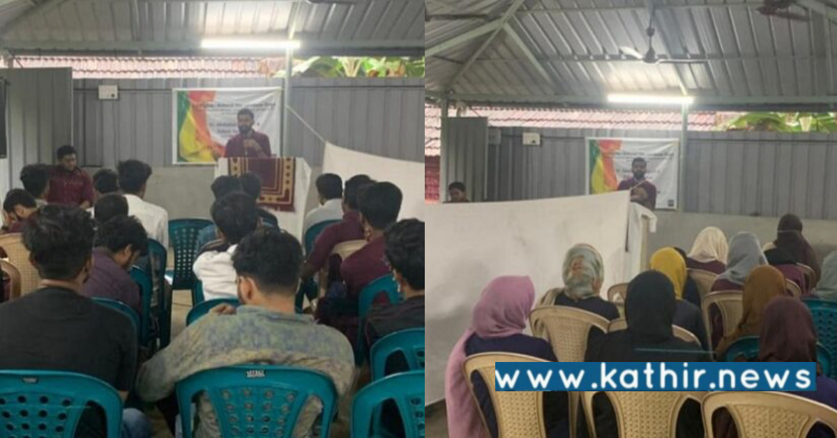 பாலின அரசியல் என்ற தலைப்பில் விரிவுரையின் போது ஆண் மற்றும் பெண் மாணவர்களை திரைச் சீலையால் பிரிக்கிறது.