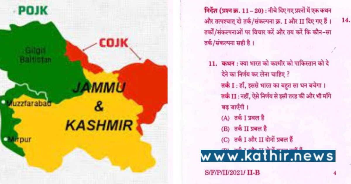 சிவில் சர்வீஸ் தேர்வு வினாத்தாள் சர்ச்சை - காஷ்மீரை பாகிஸ்தானிடம் ஒப்படைக்க வேண்டுமா?