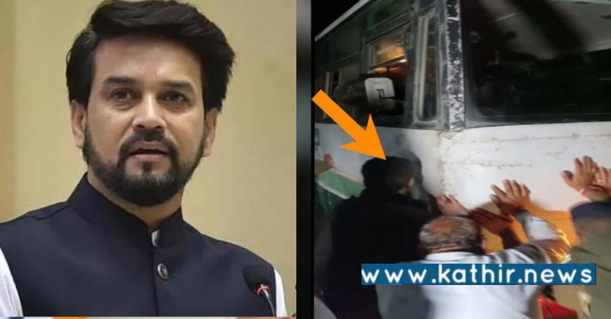 பழுதாகி நின்ற பேருந்து மக்களுடன் சேர்ந்து தள்ள உதவிய மத்திய அமைச்சர் அனுராக் தாக்கூர்.