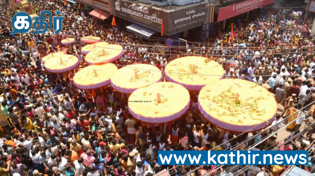 கடந்த 18 ஆண்டுகளாக ஏழுமலையானுக்கு 11 வெண்பட்டு குடைகளை திருமலை திருப்பதி பிரம்மேற்சவத்தில் தமிழக பக்தர்கள் சார்பில் சமர்ப்பிக்கப்பட்டு வருகிறது. அதன்படி இந்த வருடத்திற்கான திருப்பதி உபய உற்சவம் சென்னை பூக்கடை சென்ன கேசவ பெருமாள் கோவிலில் தொடங்கியது. புரட்டாசி பிரம்மேற்சவத்தை முன்னிட்டு தொடங்கிய இந்த ஊர்வலம் சென்னையில் இருக்கக்கூடிய வடக்கு மேற்கு பகுதிகளுக்கு சென்று மதிய வேளையில் வைராகி மடத்தில் வைக்கப்பட்டு, நான்கு மணி அளவில் கௌரி தாண்டு நிகழ்ச்சி நடைபெற்றுள்ளது. நாதஸ்வரம், மேளதாளங்கள் முழங்க பட்டு துணி, மூங்கில், ஜரிகை மற்றும் சில மின்னும் பொருட்களால் தயாரிக்கப்பட்ட 11 குடைகள் கேசவ பெருமாள் கோவிலில் இருந்து புறப்பட்டு சென்றுள்ளது. இந்த குடைகளில் ஒன்பது குடைகள் திருப்பதி திருமலை கோவில் நிர்வாகத்திடம் ஒப்படைக்கப்பட்டு மீதம் இரண்டு குடைகள் மட்டுமே திருப்பதி கோவிலை அடைந்து பிரம்மேற்சவத்தில் பங்கு பெற வைத்து உற்சவருக்கு முன்னும் பின்னும் இந்த குடையை எடுத்து செல்வது வழக்கமாகக் கொண்டுள்ளனர். கிட்டத்தட்ட ஆறு நாட்கள் சாலை வழியாக 11 வெண்பட்டு குடைகள் ஊர்வலமாக எடுத்துச் செல்லப்படும் செல்லும் வழி எங்கும் பக்தர்களுக்கு அன்னதானம் வழங்கும் நிகழ்ச்சிகளும் நடைபெறும்.